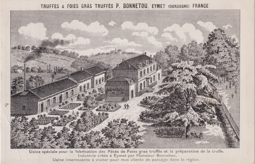 Cette carte postale présente l’usine de fabrication de conserves fines bâtie par Mr Bonnetou.